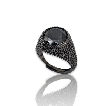 Δαχτυλίδι απο ασήμι 925º επιπλατινωμένο μαύρο με μαύρο ζιργκόν