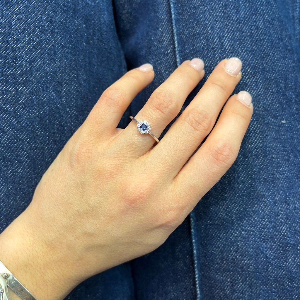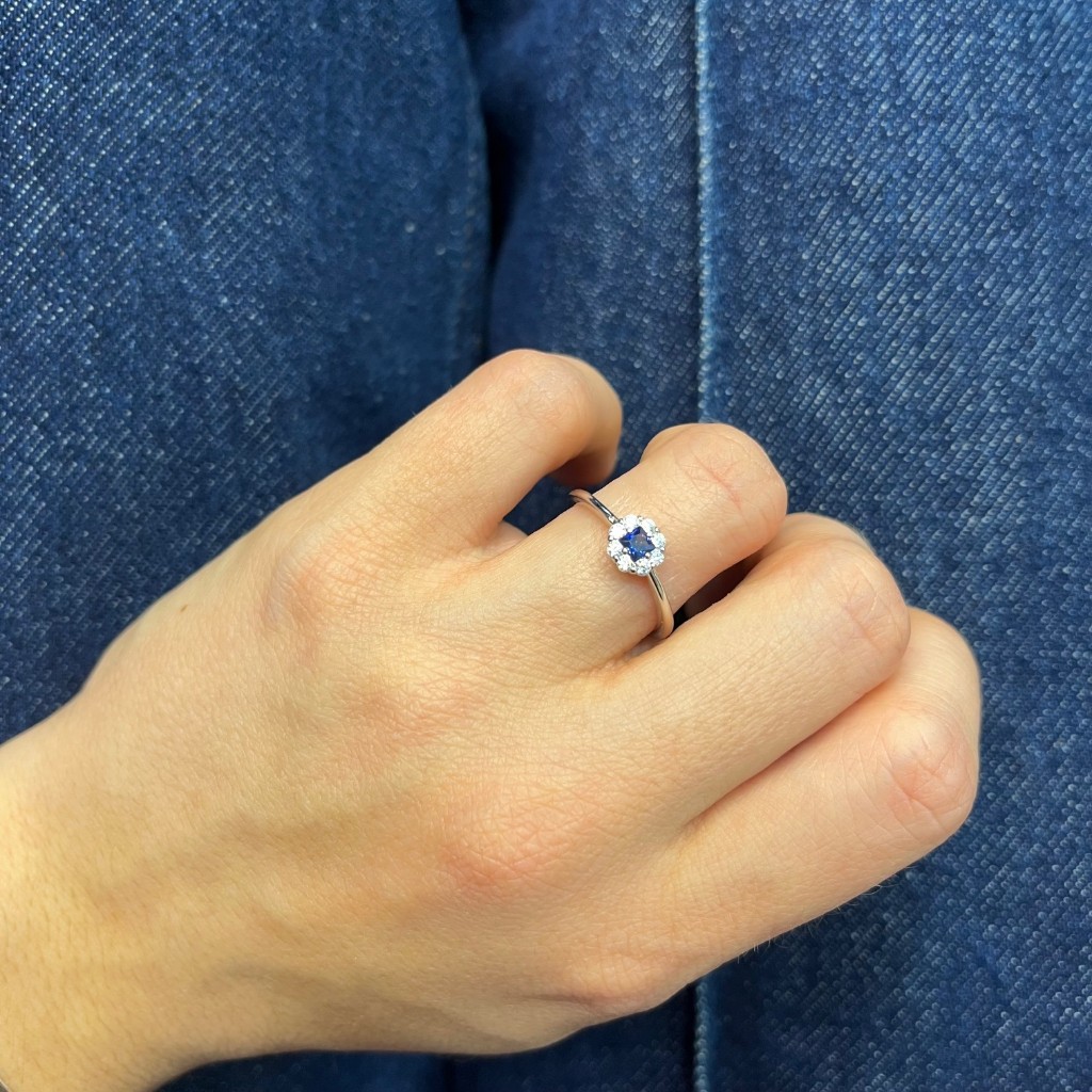 Δαχτυλίδι απο επιπλατινωμένο ασήμι 925º και λευκά ζιργκόν και συνθετικό μπλέ τοπάζι