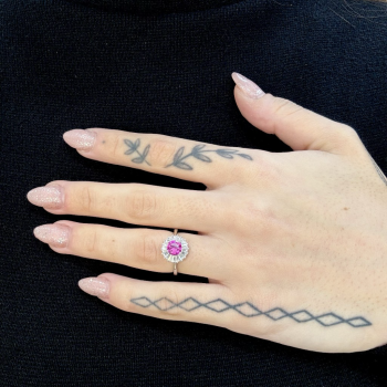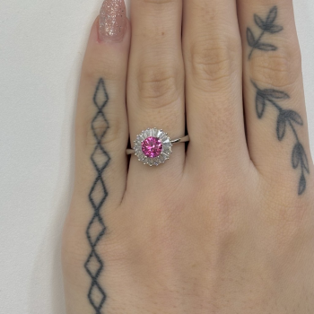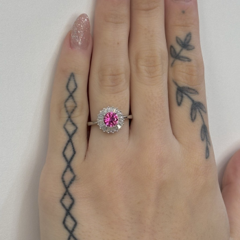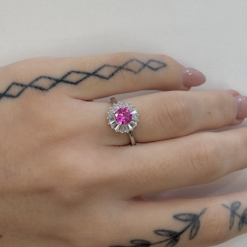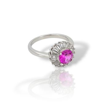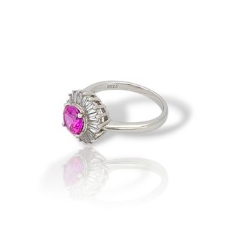 Δαχτυλίδι απο επιπλατινωμένο ασήμι 925º με λευκά ζιργκόν & συνθετικό ρουμπίνι