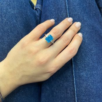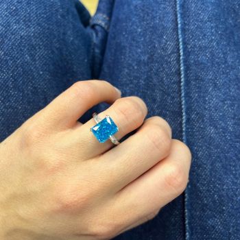 Το συγκεκριμένο δαχτυλίδι συνδυάζει την έντονη και παράλληλα κομψή μπλε απόχρωση του συνθετικού ζαφειριού.