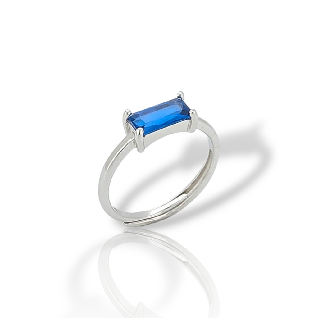 Δαχτυλίδι απο επιπλατινωμένο ασήμι 925º με συνθετικό ζαφείρι.