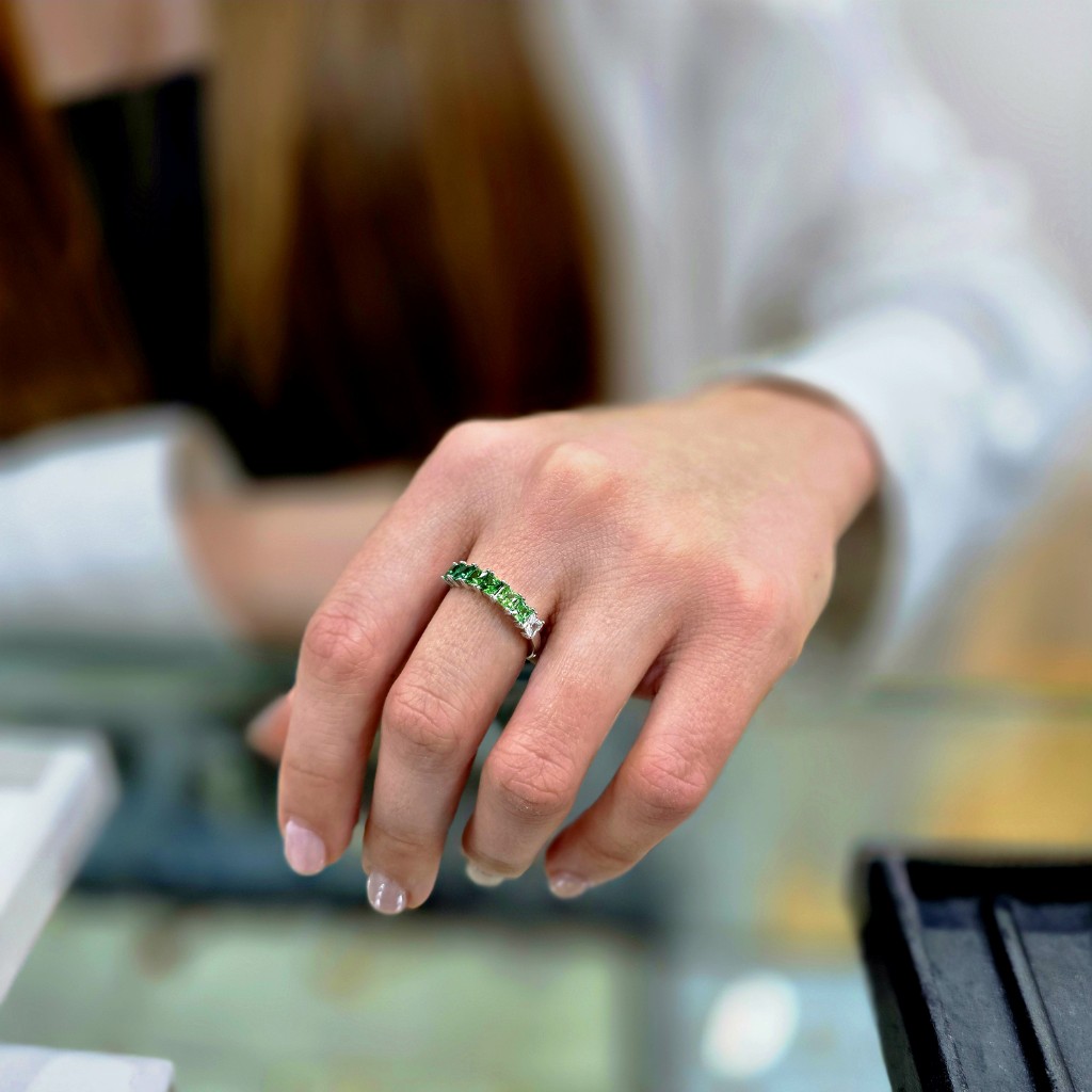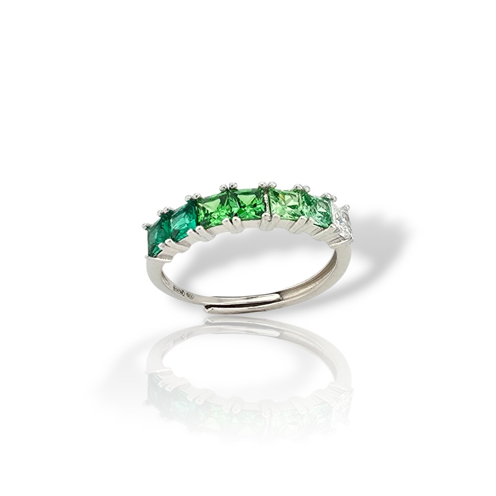 Δαχτυλίδι απο επιπλατινωμένο ασήμι 925º με όλες τις αποχρώσεις συνθέτικων σμαραγδιών και λευκό ζιργκόν.