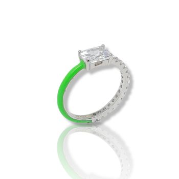Ασημένιο δαχτυλίδι απο επιπλατινωμένο ασήμι 925°και πράσσινο σμάλτο (code FC002633)