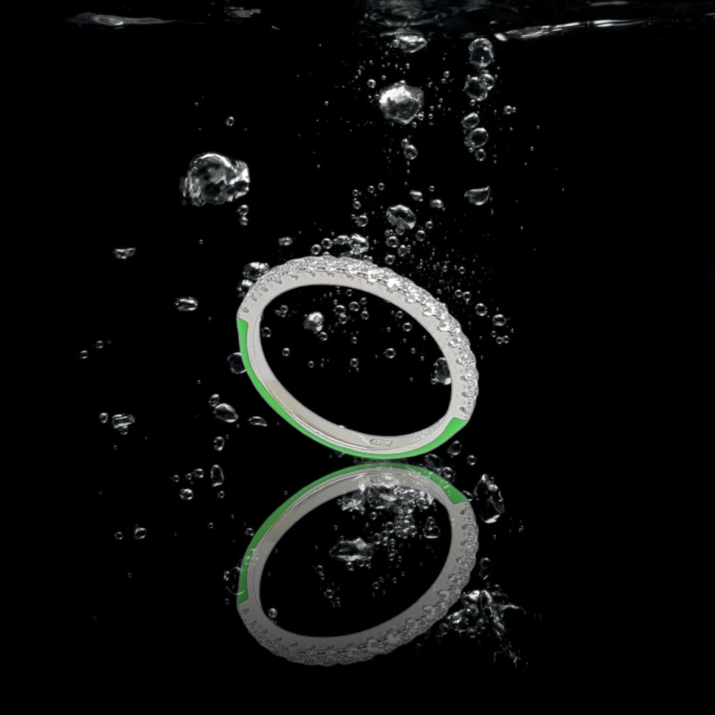 Ασημένιο δαχτυλίδι απο επιπλατινωμένο ασήμι 925°και πράσσινο σμάλτο (code FC002641)