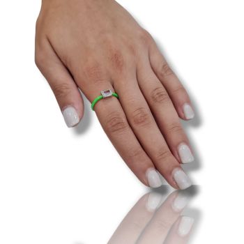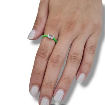Ασημένιο δαχτυλίδι απο επιπλατινωμένο ασήμι 925°και πράσσινο σμάλτο (code FC002665)