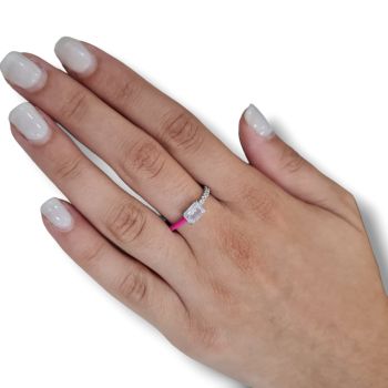 Ασημένιο δαχτυλίδι απο επιπλατινωμένο ασήμι 925°και ροζ σμάλτο (code FC002631)