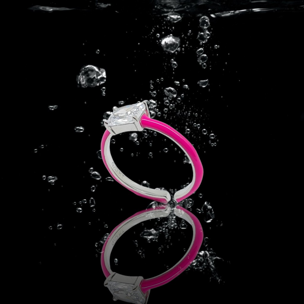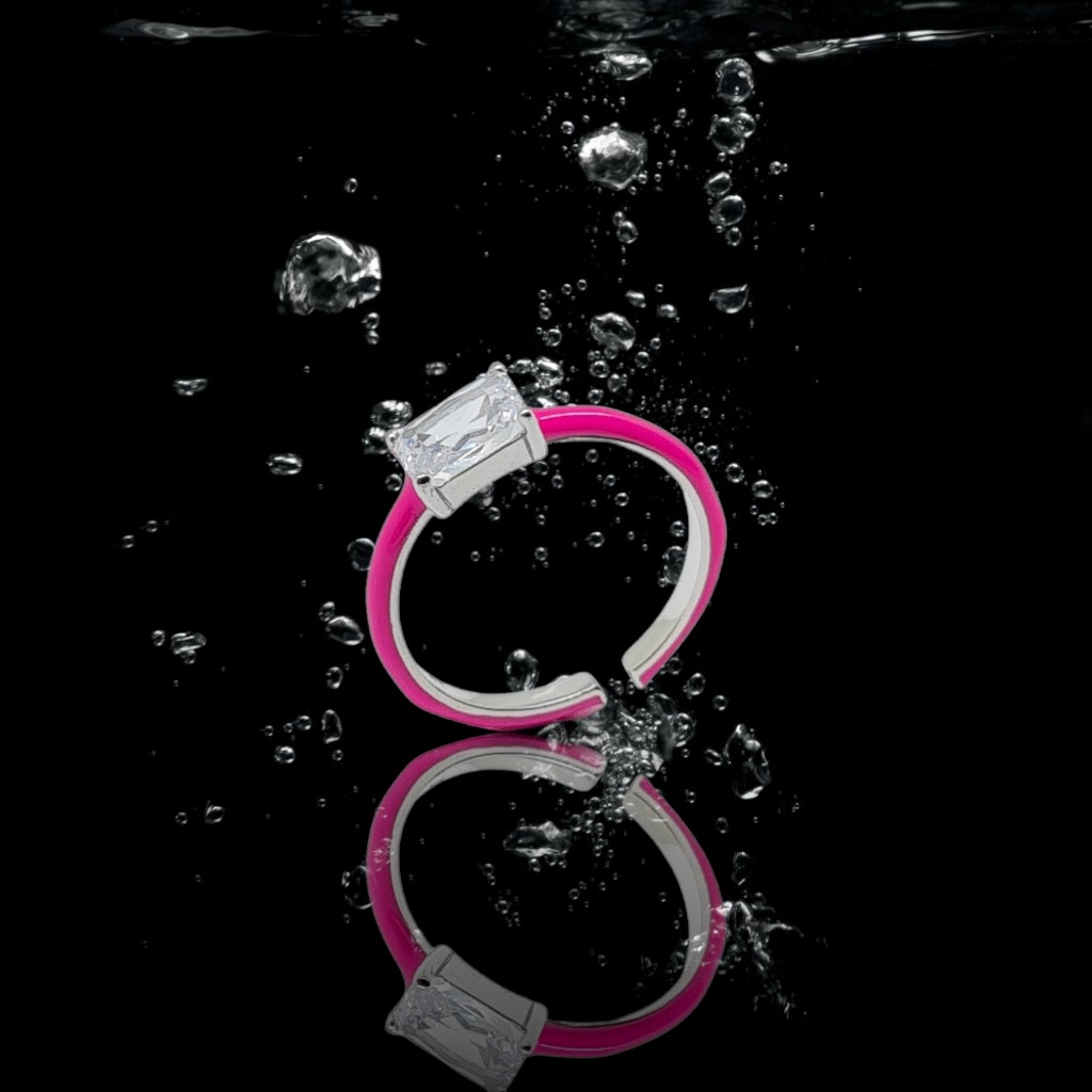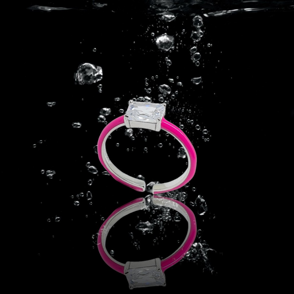 Ασημένιο δαχτυλίδι απο επιπλατινωμένο ασήμι 925°και ροζ σμάλτο (code FC002663)