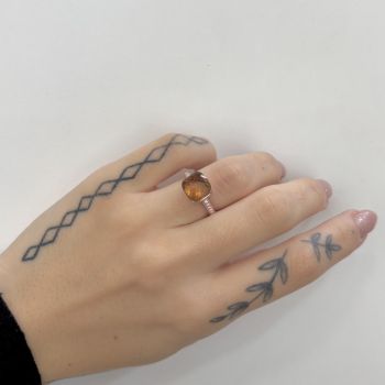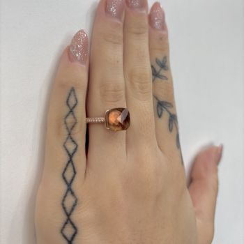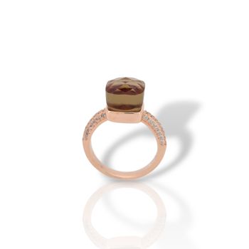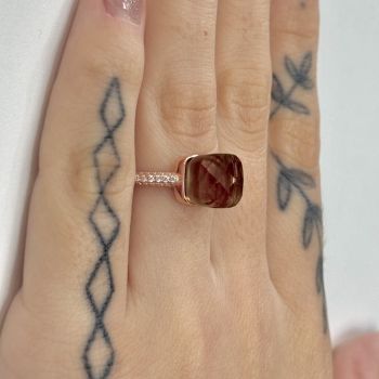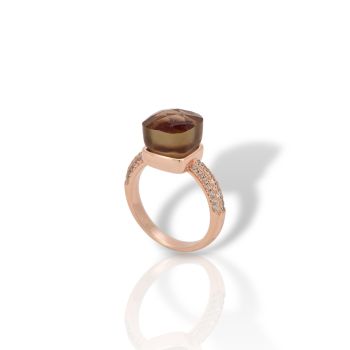 Δαχτυλίδι απο επιχρυσωμένο ασήμι με ροζ χρυσό, με συνθετικό Χαλαζία Καπνιά & λευκά ζιργκόν