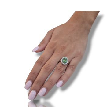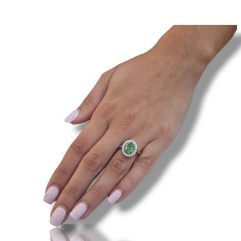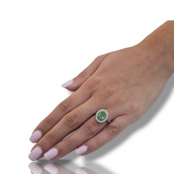 Δαχτυλίδι απο επιπλατινωμένο ασήμι 925º και λευκά ζιργκόν και συνθετικό σμαράγδι 6mm x 8.5mm