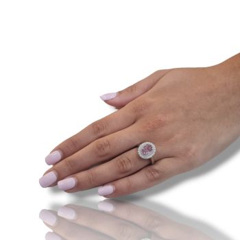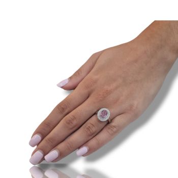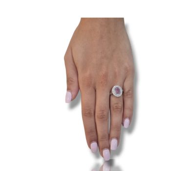 Δαχτυλίδι απο επιπλατινωμένο ασήμι 925º και λευκά ζιργκόν και με συνθετική πέτρα φούξια 6mm x 8.5mm