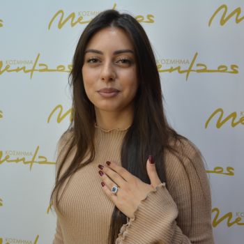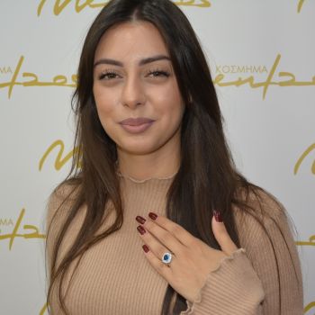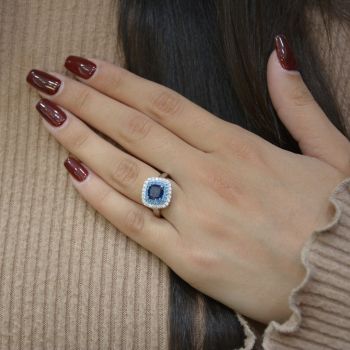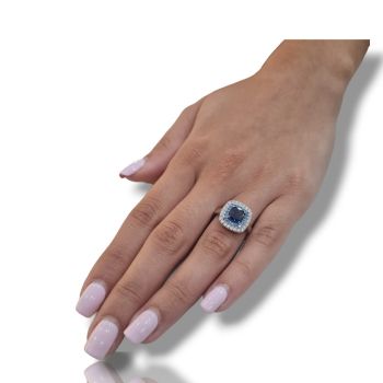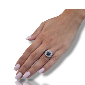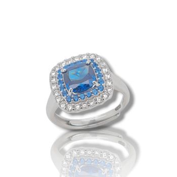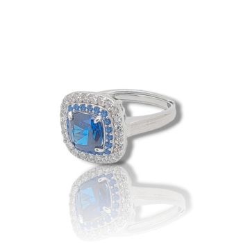 Δαχτυλίδι απο επιπλατινωμένο ασήμι 925º και λευκά ζιργκόν και συνθετικό μπλέ ζαφείρι 6.6mm x 6.6mm