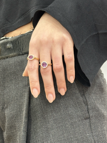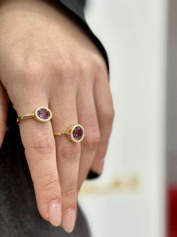 Δαχτυλίδι απο επιπλατινωμένο ασήμι 925º και λευκά ζιργκόν και μωβ κεντρική συνθετική πέτρα. Αυτό το δαχτυλίδι από επιπλατινωμένο ασήμι 925° με λευκά ζιργκόν και μωβ οβάλ κεντρική συνθετική πέτρα συνδυάζει τη λάμψη του ασημιού και την κομψότητα του σχεδιασμού με την έντονη απόχρωση της μωβ πέτρας. Είναι ένα εξαιρετικό κόσμημα για όσους αναζητούν μια μοντέρνα, αλλά και πολυτελή εμφάνιση, ιδανικό για ξεχωριστές περιστάσεις ή ως εντυπωσιακό δώρο για κάποιο αγαπημένο πρόσωπο.