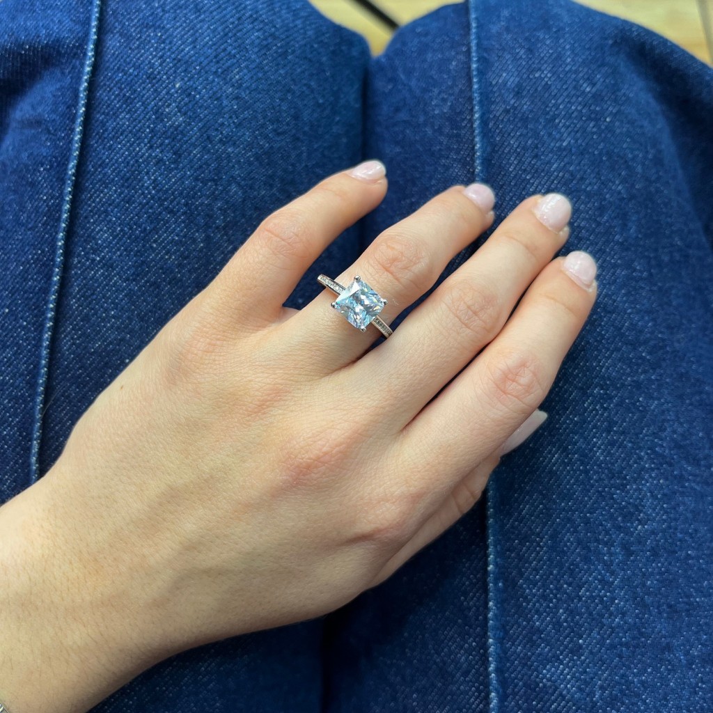 Δαχτυλίδι απο επιπλατινωμένο ασήμι 925º με συνθετική πέτρα σε σχήμα princess.