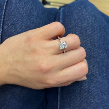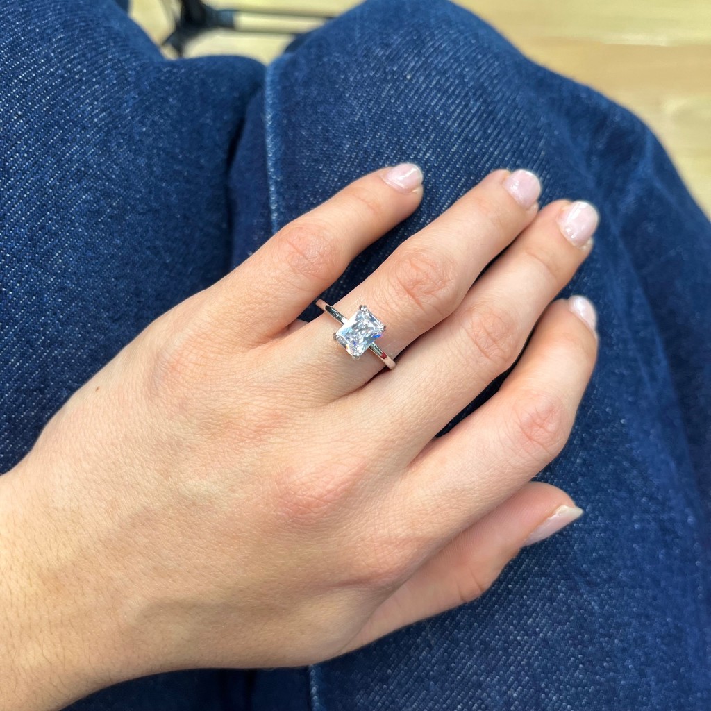 Δαχτυλίδι απο επιπλατινωμένο ασήμι 925º με συνθετική πέτρα σε σχήμα emerald.