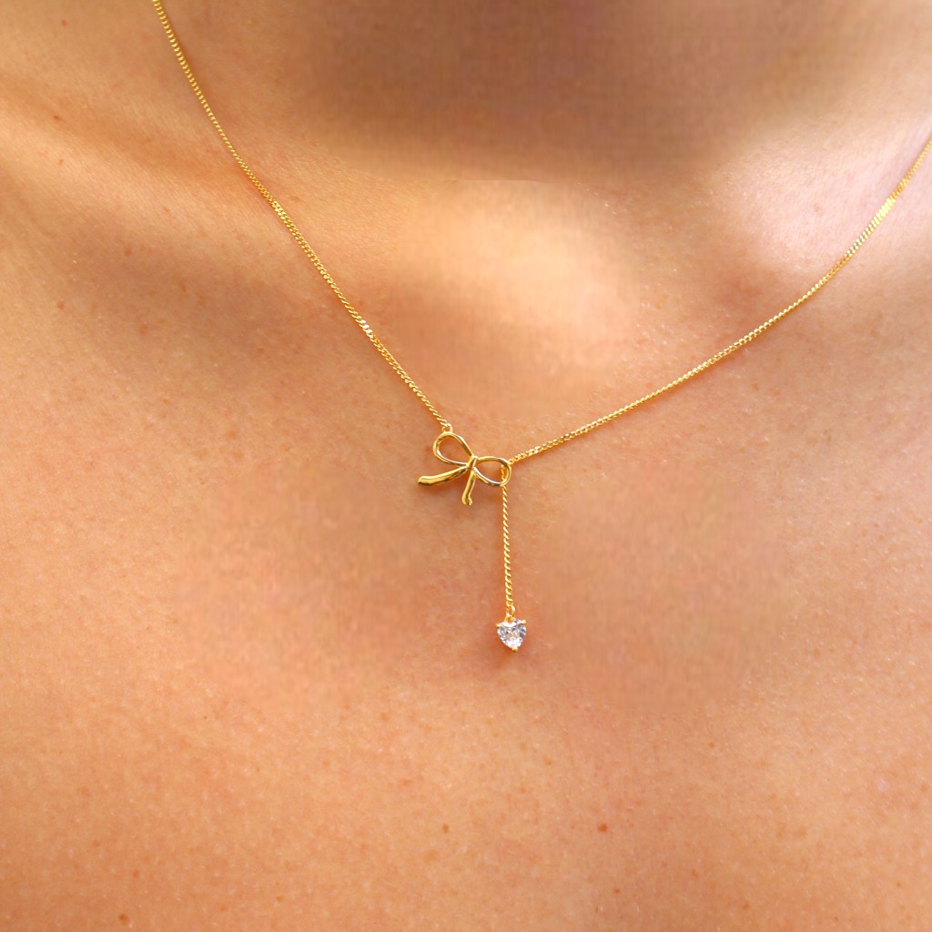 Ρομαντικό και κομψό ασημένιο κολιέ, διακοσμημένο με φινετσάτο φιόγκο. Ένα κόσμημα που εκφράζει αγάπη και θηλυκότητα, ιδανικό δώρο για εσάς ή τα αγαπημένα σας πρόσωπα.