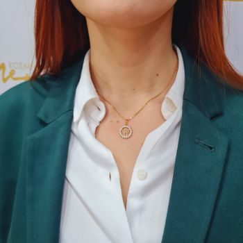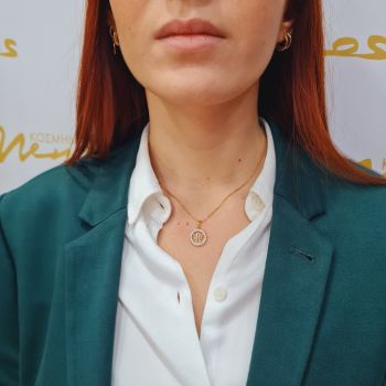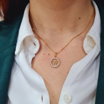 Κολιέ σε ασήμι 925, επιχρυσωμένο με μενταγιόν Angel με λευκά ζιργκόν. Μήκος αλυσίδας 40cm με προέκταση 5cm
