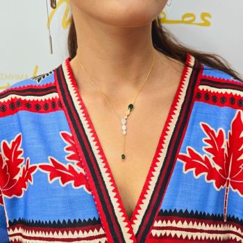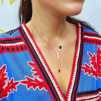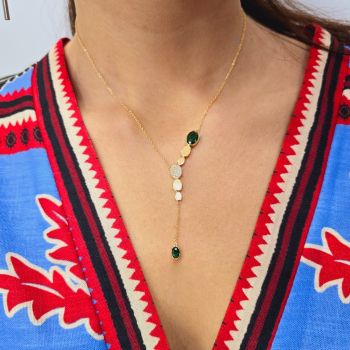 Ασημένιο, επιχρυσωμένο κολιέ με ζιργκόν και συνθετικό σμαράγδι σε οβάλ σχήμα
