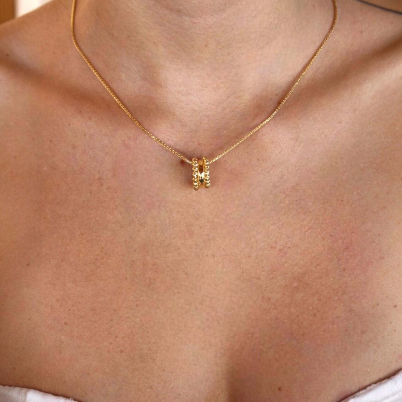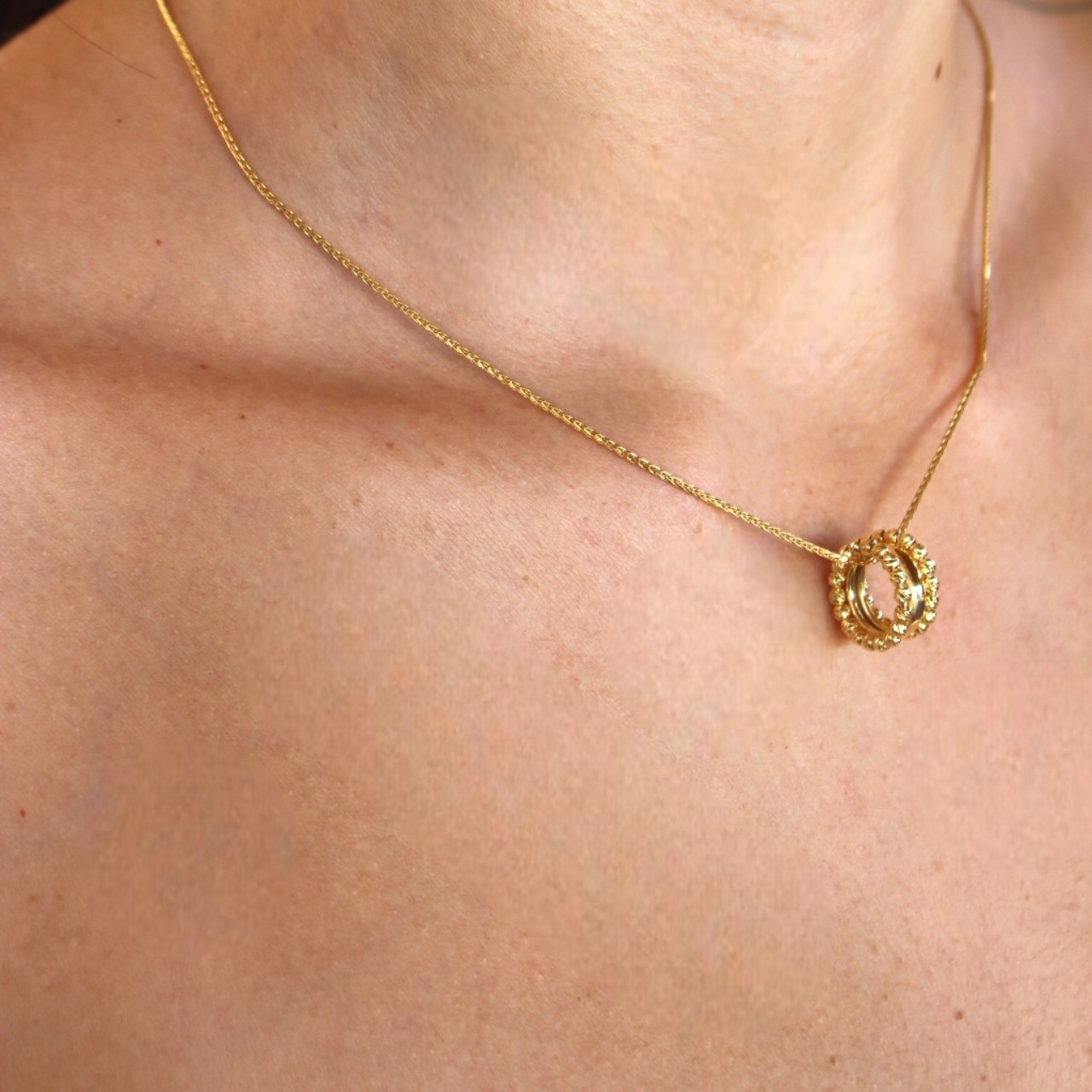 Κολιέ από επιχρυσωμένο ασήμι 925° με τρεις ενωμένους κύκλους με διπλή υφή.