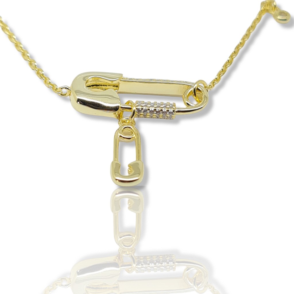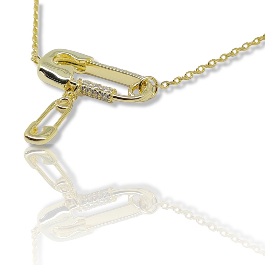Κολιέ παραμάνες απο επιχρυσωμένο ασήμι 925° & λευκά ζιργκόν (code NZB103340)