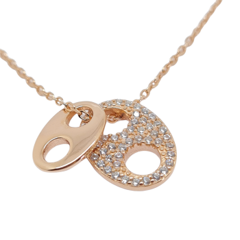 Ασημένιο κολιέ επιχρυσωμένο με ροζ χρυσό και λευκά ζιργκόν