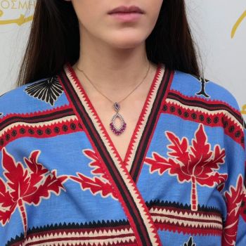 Ασημένιο, επιχρυσωμένο με ροζ χρυσό, κολιέ με λευκά ζιργκόν και συνθετικά ρουμπίνια