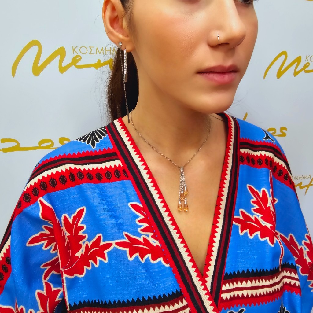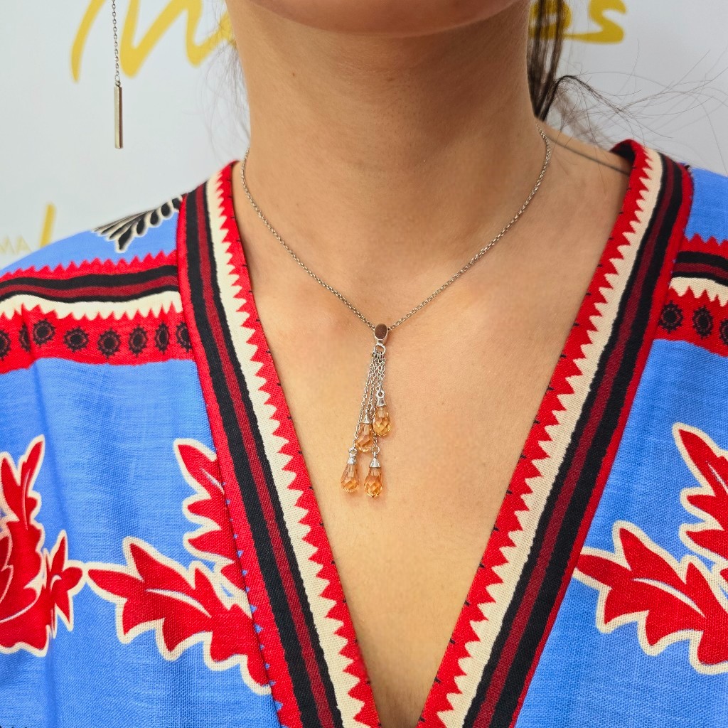 Ασημένιο επιπλατινωμένο κολιέ με πορτοκαλί συνθετικές πέτρες.