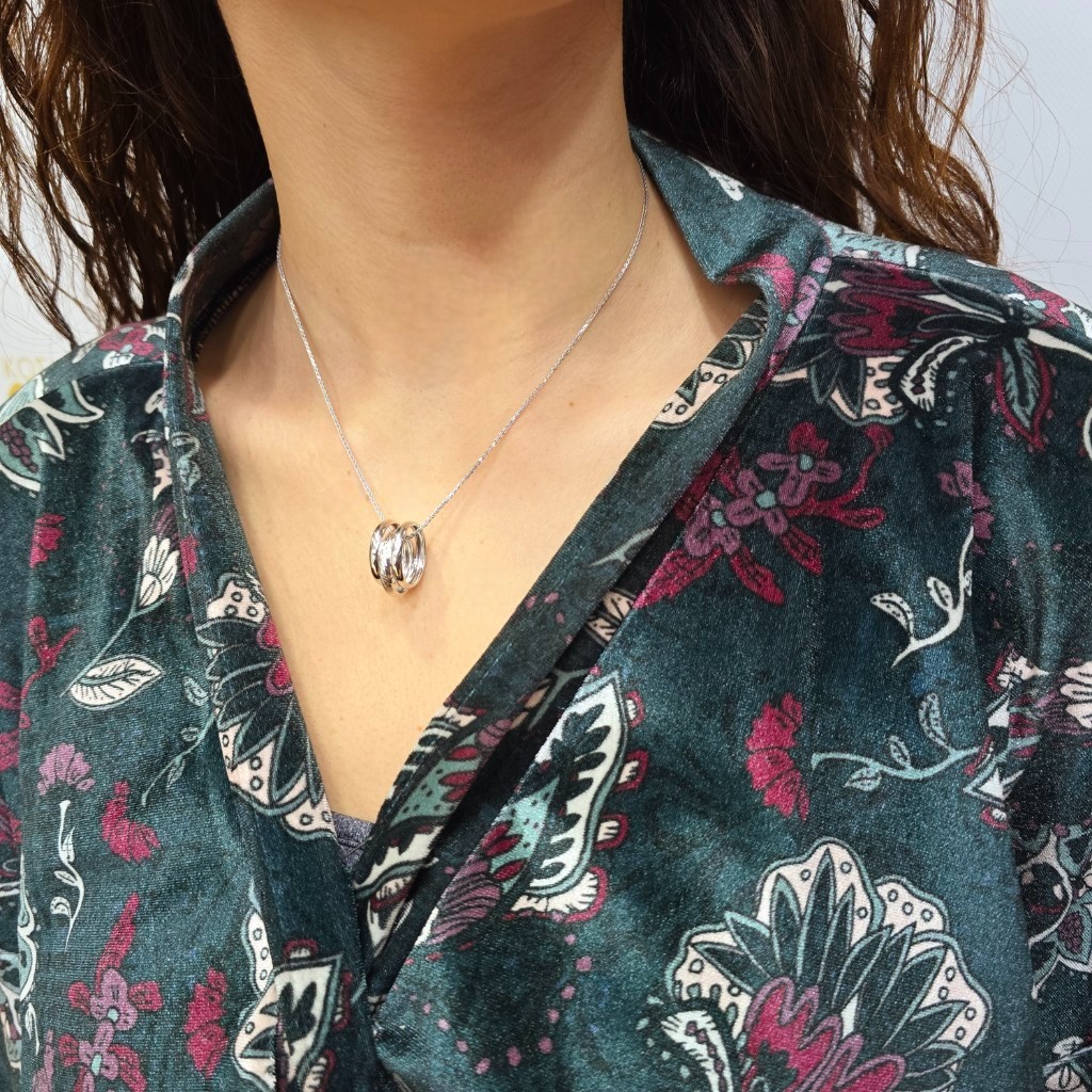 Αυτό το ασημένιο κολιέ διαθέτει τρεις ασύμμετρους κύκλους, καθένας με μοναδικό και εντυπωσιακό σχέδιο. Η λεία και γυαλιστερή επιφάνεια του ασημιού προσδίδει στο κολιέ μια κομψή και σύγχρονη αίσθηση, ενώ η ακανόνιστη διάταξη των κύκλων προσφέρει έναν καλλιτεχνικό και μοντέρνο αέρα. Ιδανικό για casual αλλά και πιο κομψές εμφανίσεις, αυτό το κολιέ είναι ένα ευέλικτο και τολμηρό statement piece που αναδεικνύει κάθε look.