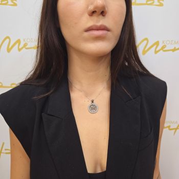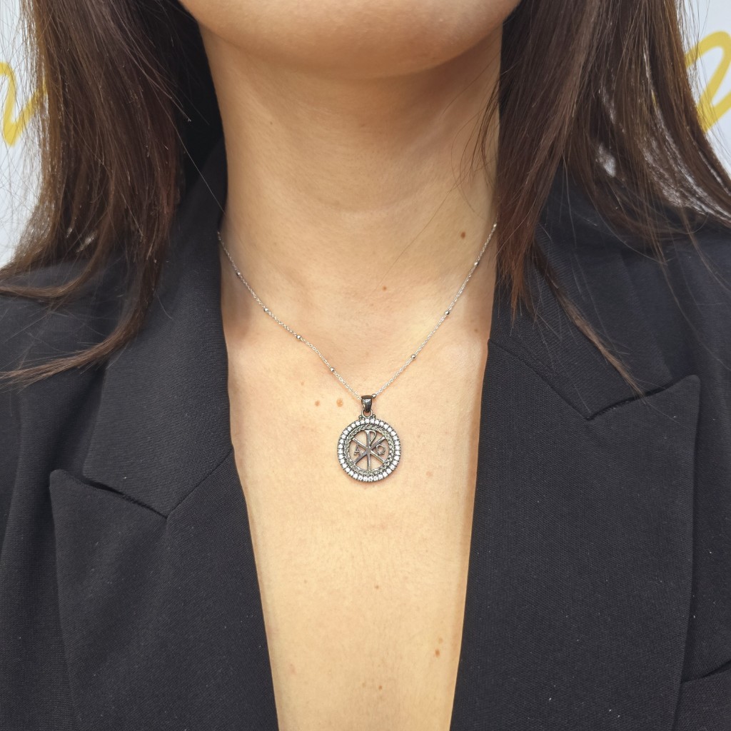 Κολιέ απο ασήμι 925, με μαύρη επιπλατίνωση με μενταγιόν και λευκά ζιργκόν.