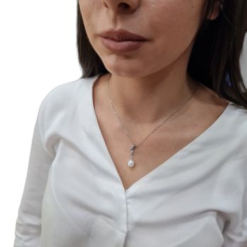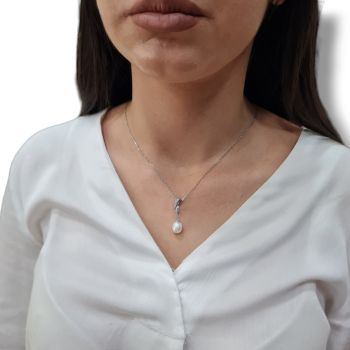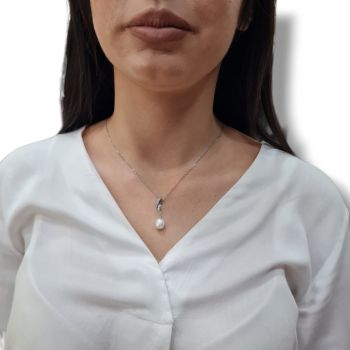 Κολιέ απο επιπλατινωμένο ασήμι 925° με μαργαριτάρι & ζιργκόν (code S230995)