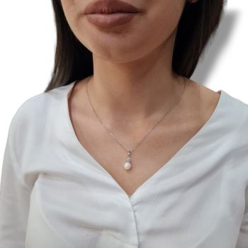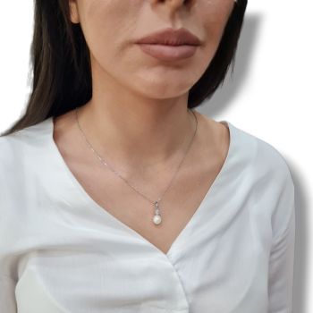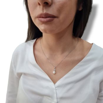 Κολιέ απο επιπλατινωμένο ασήμι 925° με μαργαριτάρι & ζιργκόν (code S231003)