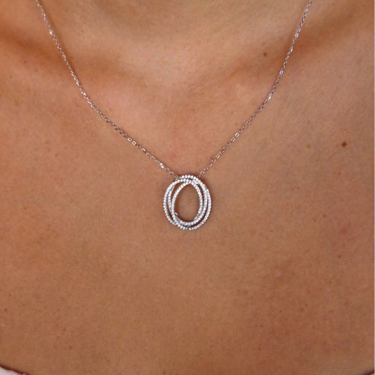 Ασημένιο, επιπλατινωμένο κολιέ με λευκά ζιργκόν