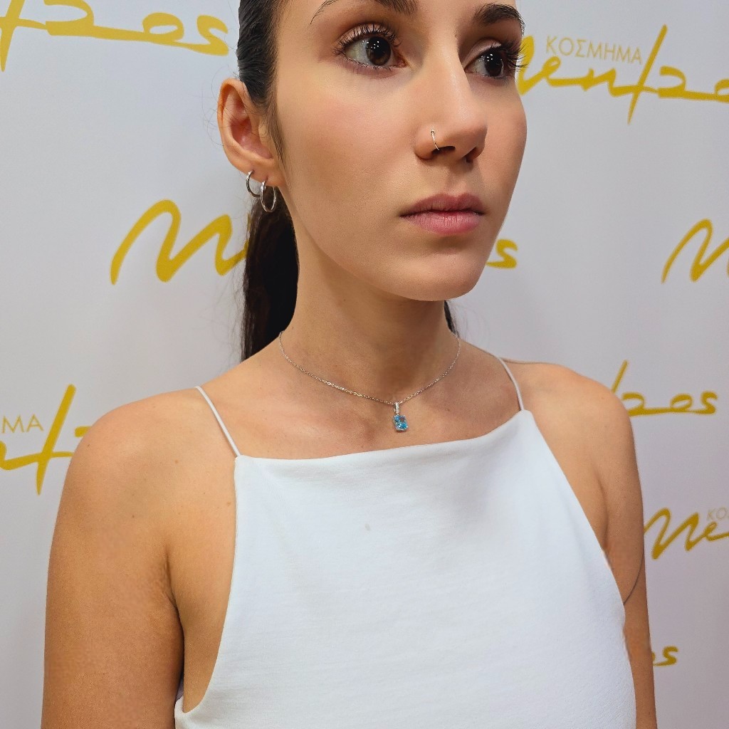 Κολιέ από επιπλατινωμένο ασήμι με συνθετικό μπλέ τοπάζι