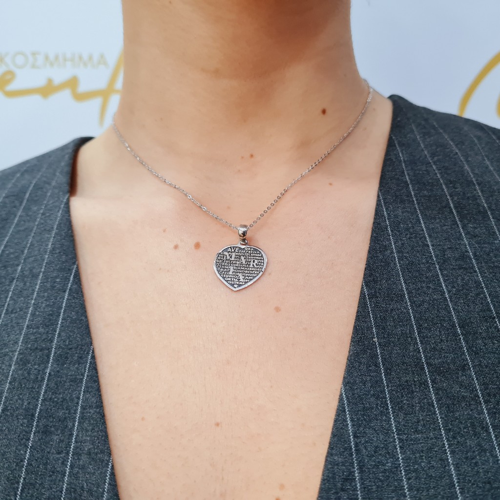 Kολιέ απο επιπλατινωμένο ασήμι με καρδιά 925º "AVE MARIA" (code AGI 261/C-A)