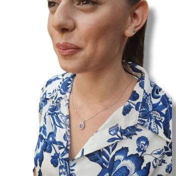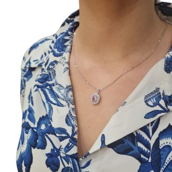 Ασημένιο κολιέ με λευκά ζιργκόν με συνθετική πέτρα φούξια 8.0mm x 6.0mm