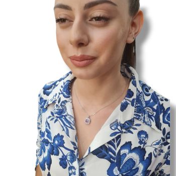 Kολιέ ασημένιο  925° επιπλατινωμένo με με συνθετική πέτρα φούξια (code FC007090)
