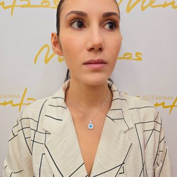 Kολιέ ασημένιο 925° επιπλατινωμένα με συνθετικό μπλέ Τοπάζι (code FC010865)