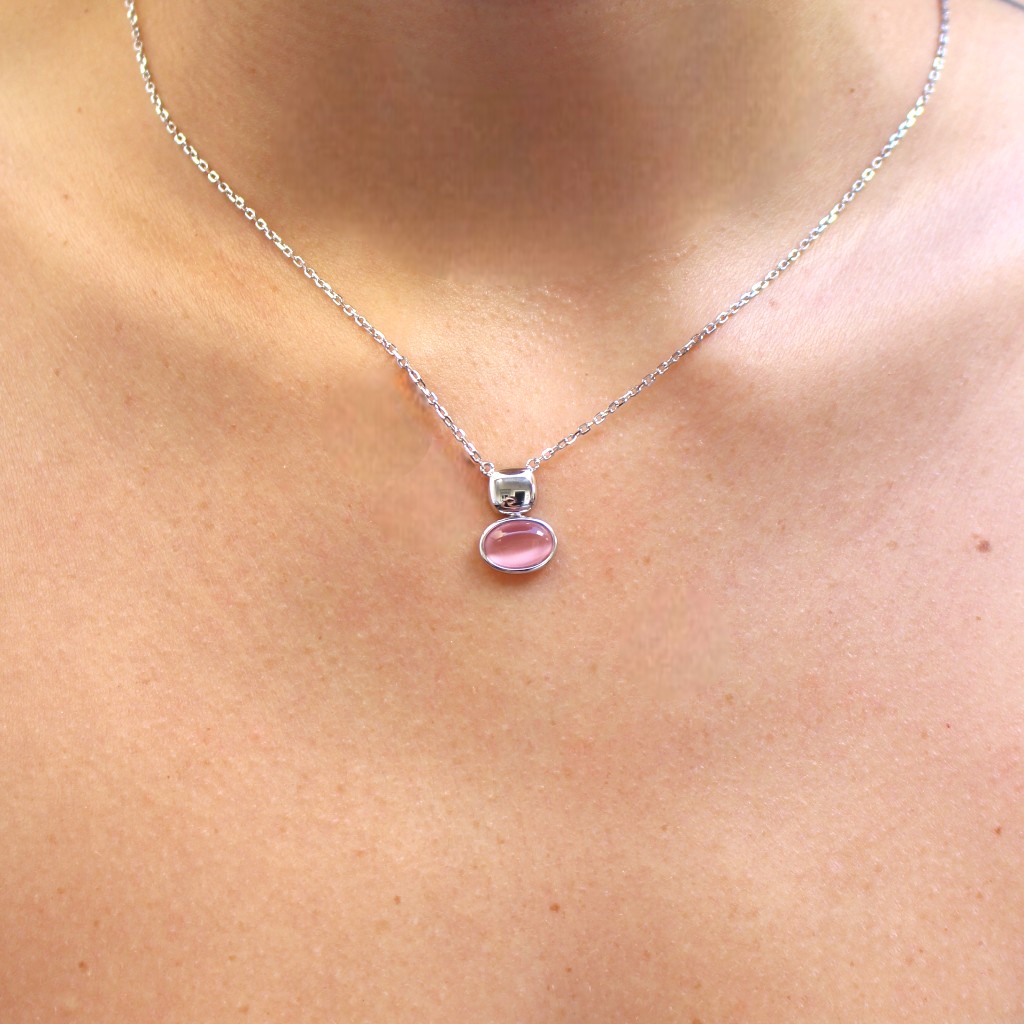 Kολιέ ασημένιο 925° επιπλατινωμένο με συνθετικό μάτι της γάτας (code FC012670)
