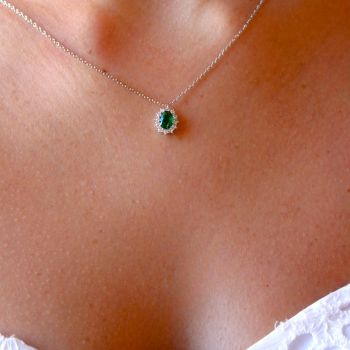 Ασημένιο κολιέ με συνθετικό σμαράγδι