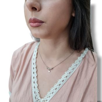 Ασημένιο, επιπλατινωμένο κολιέ με επιχρυσωμένο (ροζ) αστεράκι