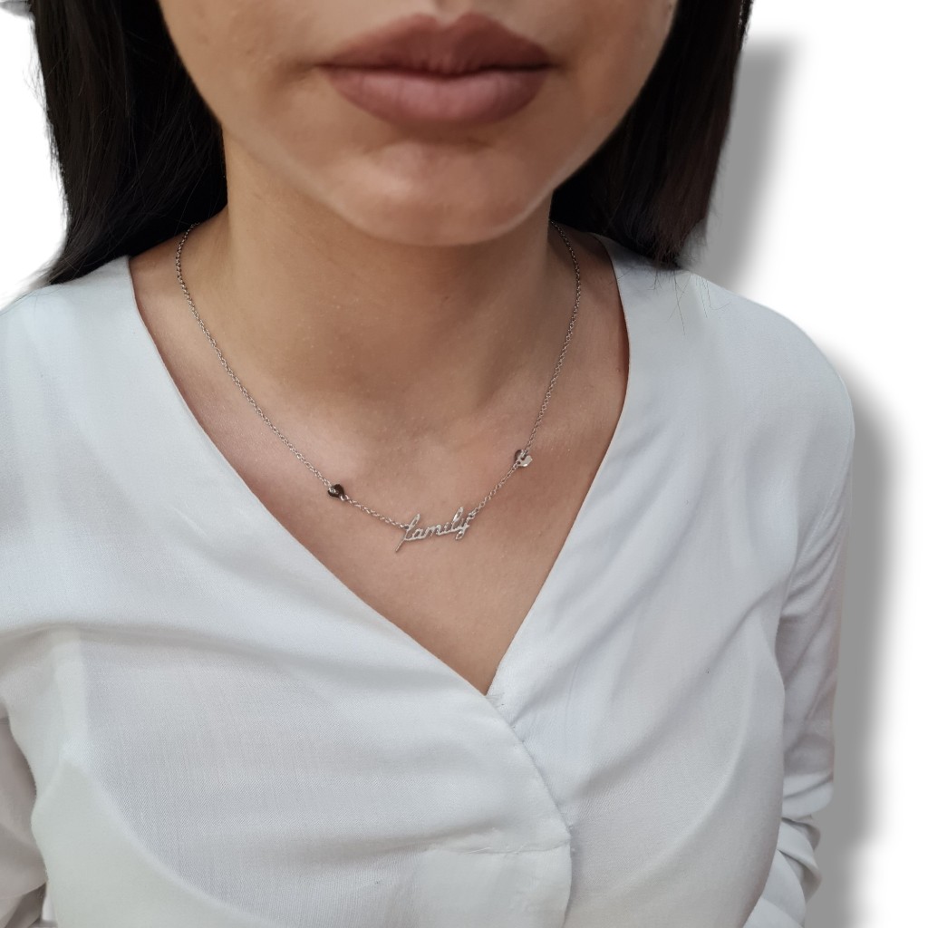 Ασημένιο, επιπλατινωμένο κολιέ με Family & καρδούλες