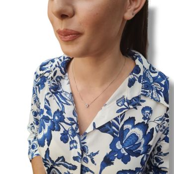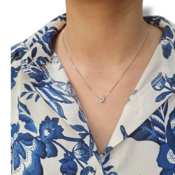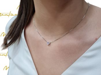 Ασημένιο, επιπλατινωμένο κολιέ με λευκά ζιργκόν και ρόζ συνθετική πέτρα