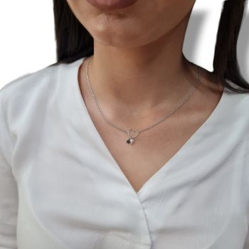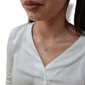 Ασημένιο, επιπλατινωμένο κολιέ με Καρδούλα, αστεράκι & μαργαριτάρι