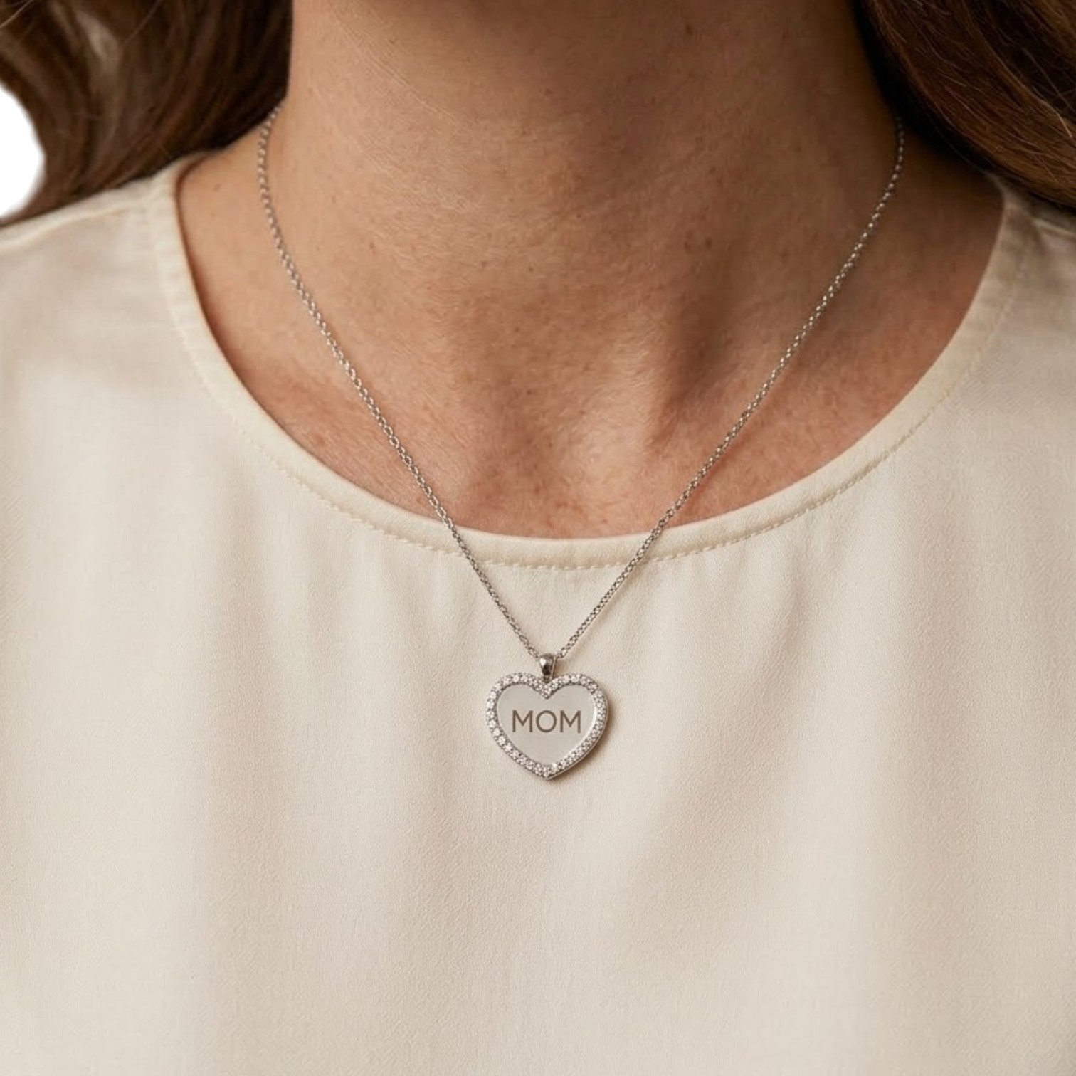Κολιέ καρδούλα ΜΟΜ απο επιπλατινωμένο ασήμι (code FC005355W)
