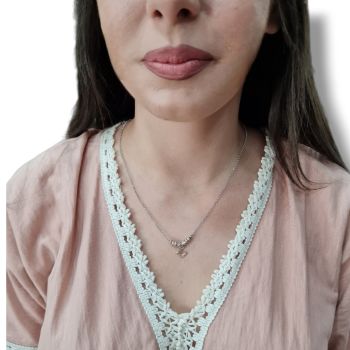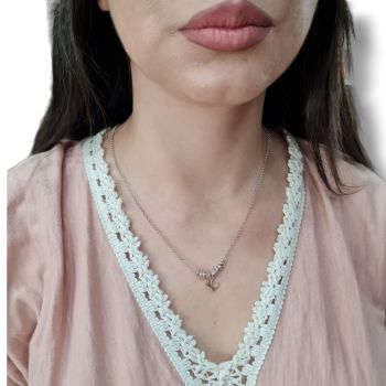 Ασημένιο, επιπλατινωμένο κολιέ με επιχρυσωμένη (ροζ) πεταλούδα