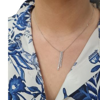 Κολιέ ασημένιο, επιπλατινωμένο, με λευκά ζιργκόν