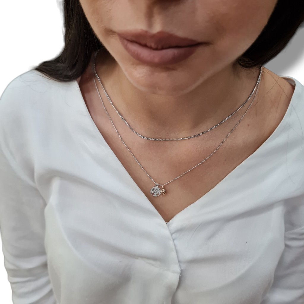 Κολιέ δεντρο της ζωης & καρδούλα απο επιπλατινωμένο ασήμι 925° (code S260867)