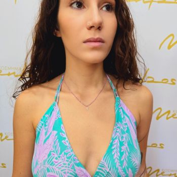 Ροζάριο απο επιχρυσωμένο ασήμι με συνθετικές πέτρες & σταυρουδάκι με λευκά ζιργκόν