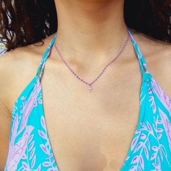 Ροζάριο απο ασήμι 925 επιπλατινωμένο με συνθετικές μωβ πέτρες (code FC010009)