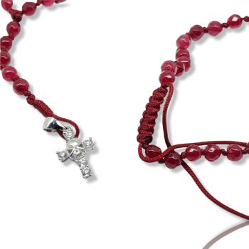 Ροζάριο με κόκκινο αχάτη και σταυρό απο ασήμι 925º με λευκά ζιργκόν (code KT002343)