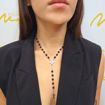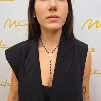 Ροζάριο απο ασήμι με σταυρό, μαυρες χάντρες 925°